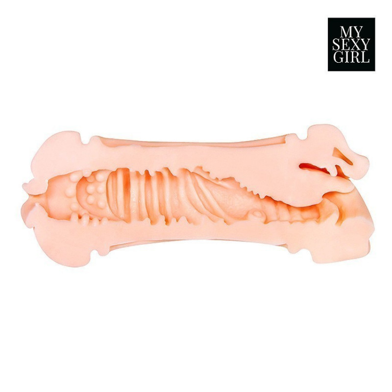 Эластичный сквозной мастурбатор в виде влагалища. Ярко выраженные половые губы и натуральный оттенок поверхности придают ему естественности.